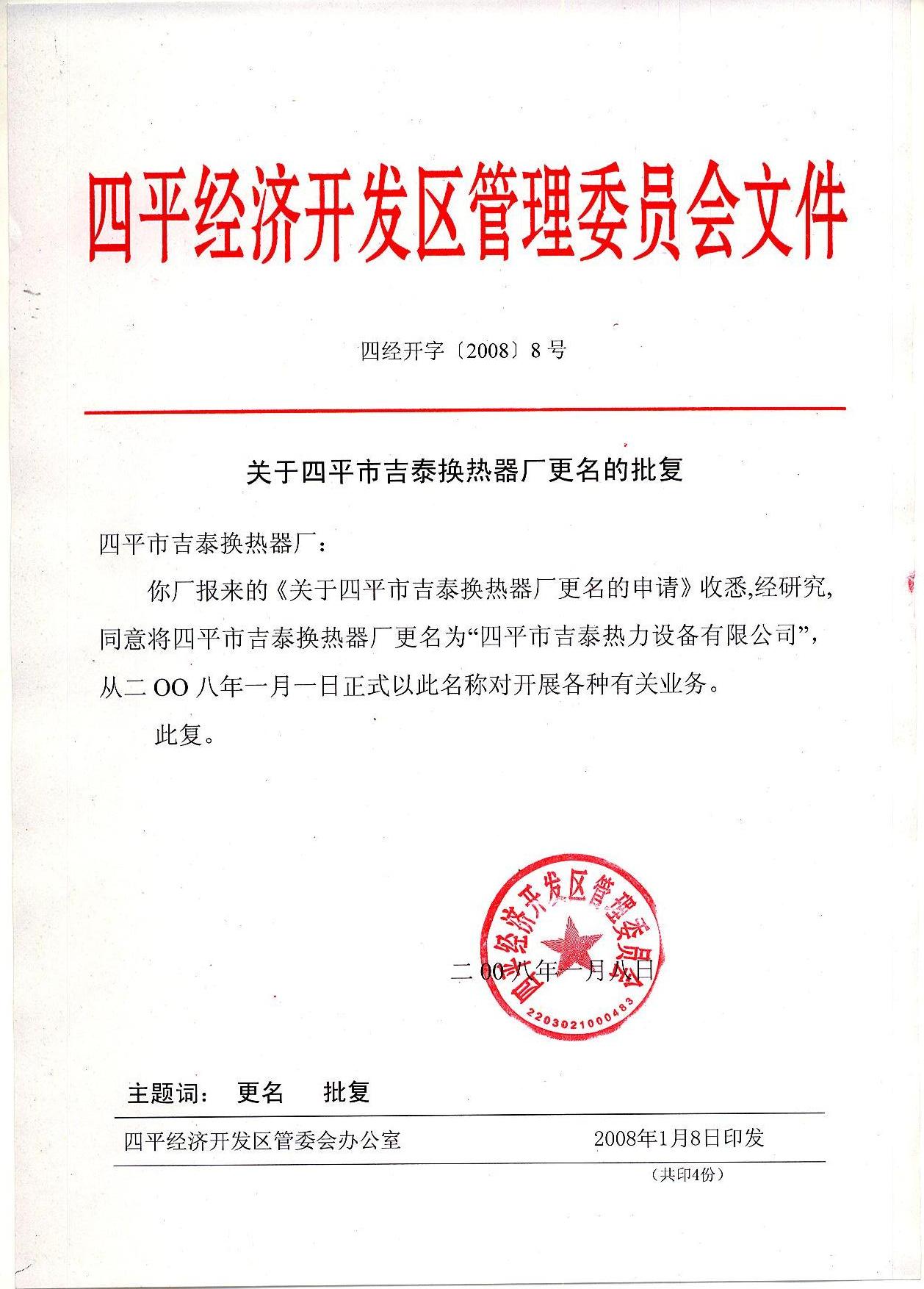 • SIPING JITAI HEAT EXCHANGE EQUIPMENT CO.,LTD. 四平市吉泰熱力設(shè)備有限公司